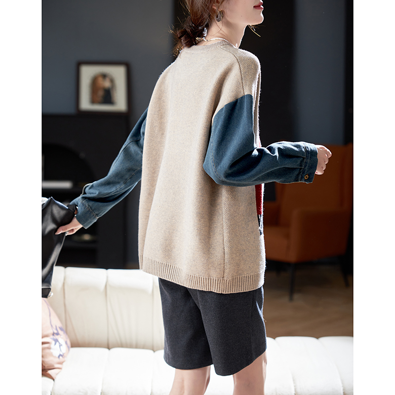 秋冬圆领羊绒衫 外套设计感小众假两件撞色毛衣 女100纯山羊绒开衫
