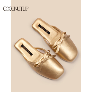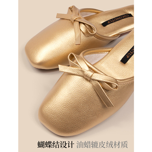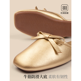 室内家居包头静音情侣银色高级棉拖 2025新款 金色蝴蝶结拖鞋 女夏季