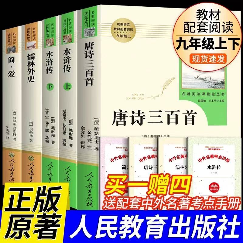 课外阅读名著初三9教材初中完整版 唐诗三百首九年级上下册必读人教版 社原著正版 2025艾青诗选和水浒传简爱儒林外史人民教育出版