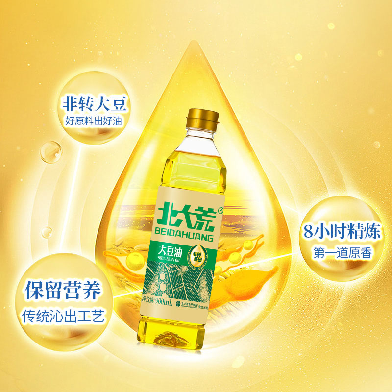 北大荒非转基因大豆油食用油一级900mL家用营养食用油