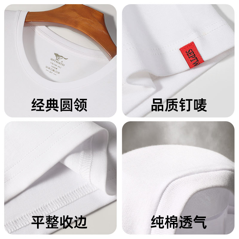 运动汗衫 七匹狼夏季 外穿全棉吸汗打底衫 圆领短袖 纯棉T 纯色T恤男士