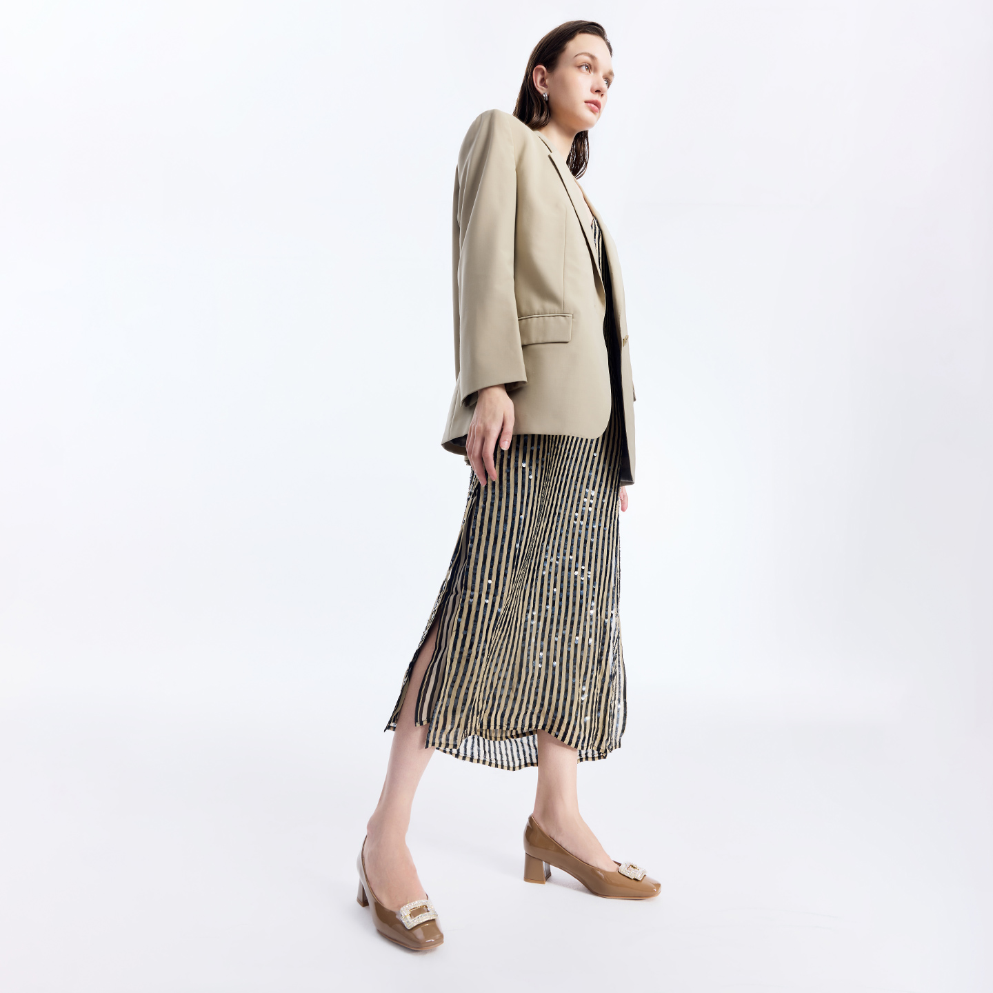 单鞋 诺贝达水钻方扣浅口单鞋 气质法式 小众设计女鞋 RL257611 时尚