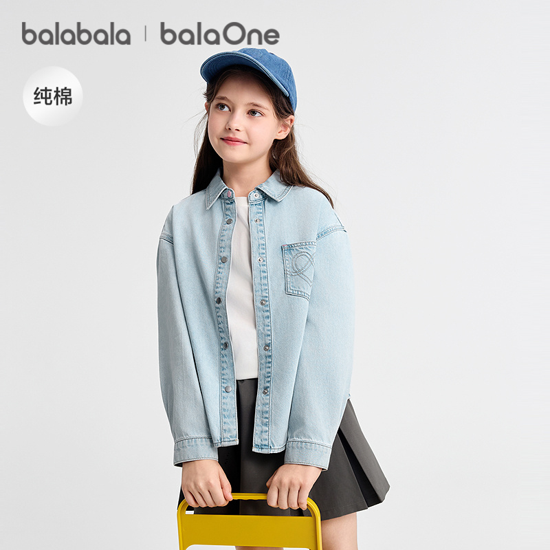 秋全棉牛仔衫 2025新款 舒适外套 儿童长袖 巴拉巴拉balaone女童衬衫