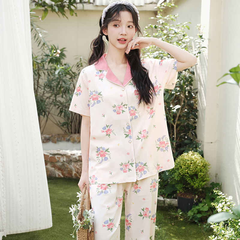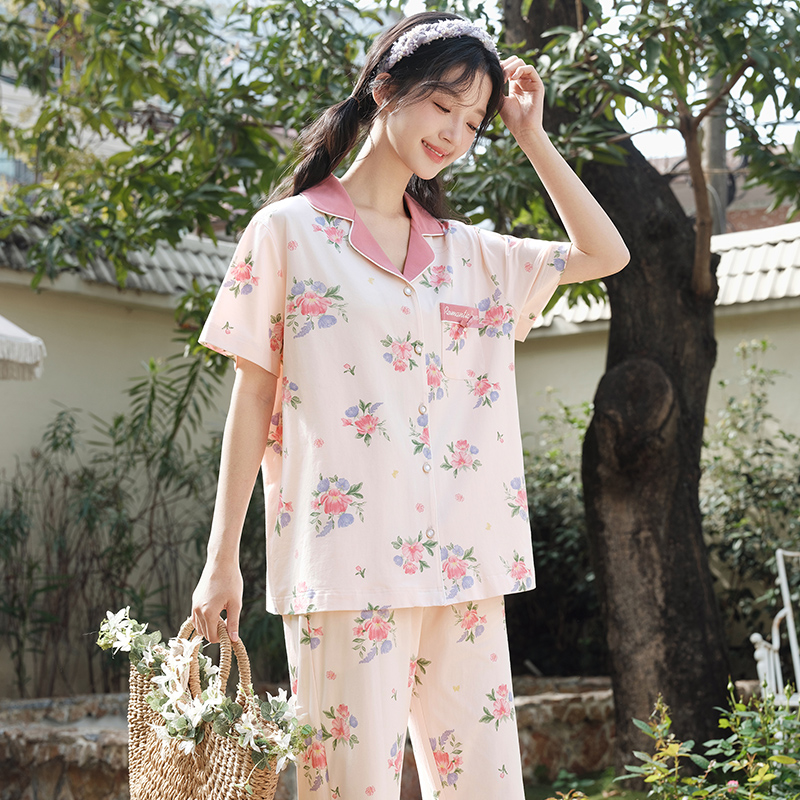 短袖 薄款 长裤 套装 女士家居服可外穿 玛伦萨睡衣女2025新款 大码 夏季