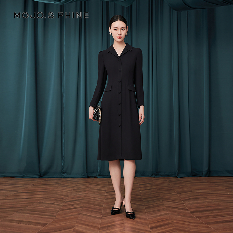 垂坠A字衬衫 复古灯笼袖 裙 通勤法式 KEIKO巴恩风束腰显瘦连衣裙秋季
