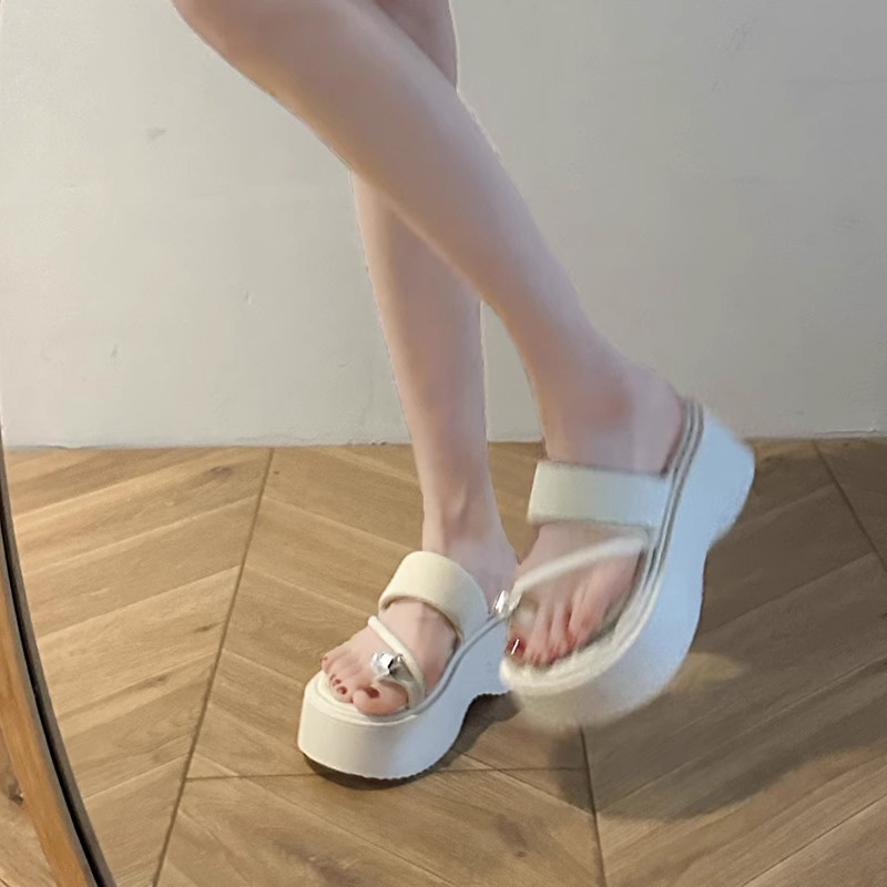 配裙子套趾沙滩一字拖凉鞋 女夏外穿2025新款 凉拖鞋 厚底增高跟时尚