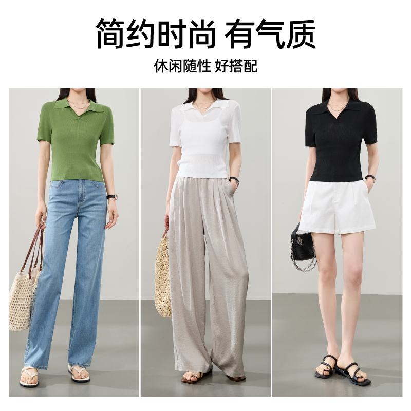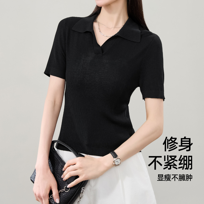 正肩修身 女2025夏新款 t恤显瘦薄上衣 针织衫 逸阳莱赛尔Polo领短袖