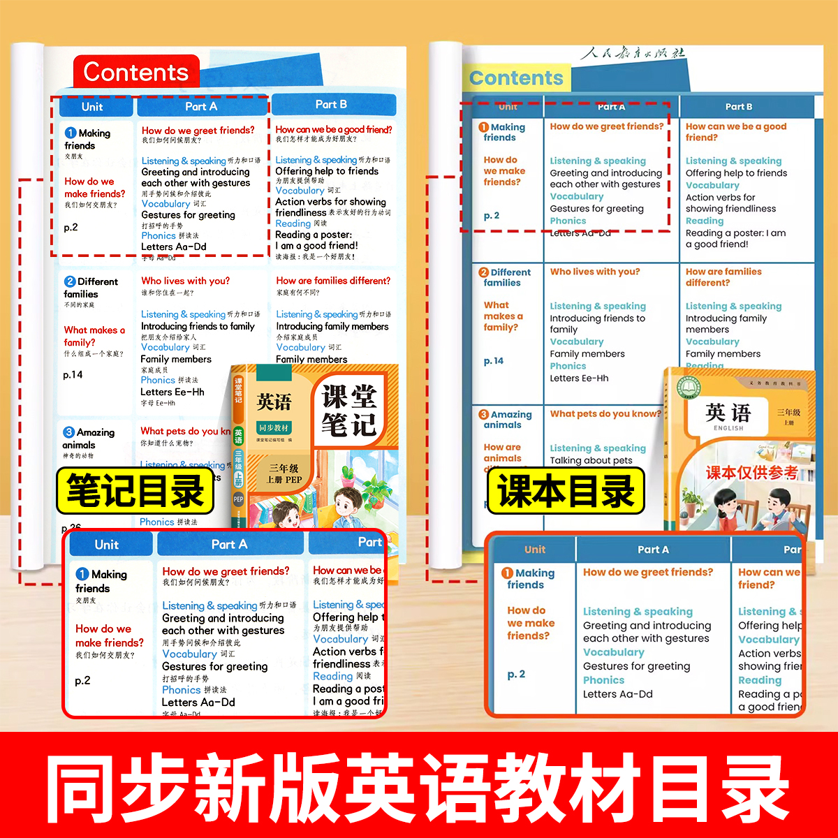 课本3起点小学教材全解随课堂预习教辅书RJ pep三上同步练习改版 2025新版 三年级上册英语课堂笔记人教版