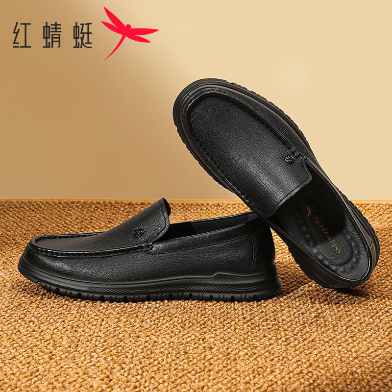 皮鞋 子舒适平底中年爸爸鞋 秋季 商务真皮软底鞋 休闲男鞋 红蜻蜓男士