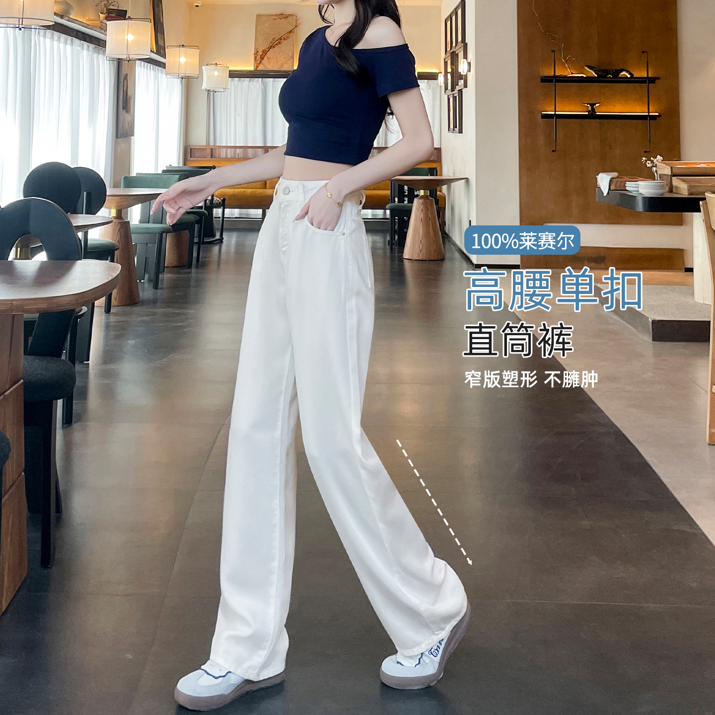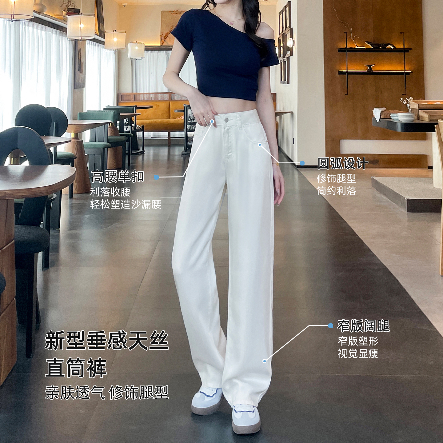 女2025秋季 百家好高腰牛仔裤 新款 印花垂感直筒裤 Basic 长裤 House