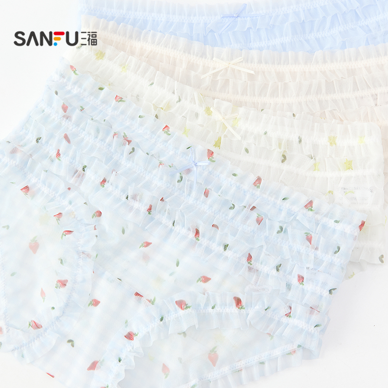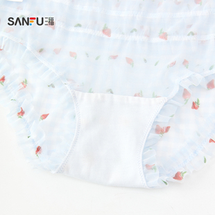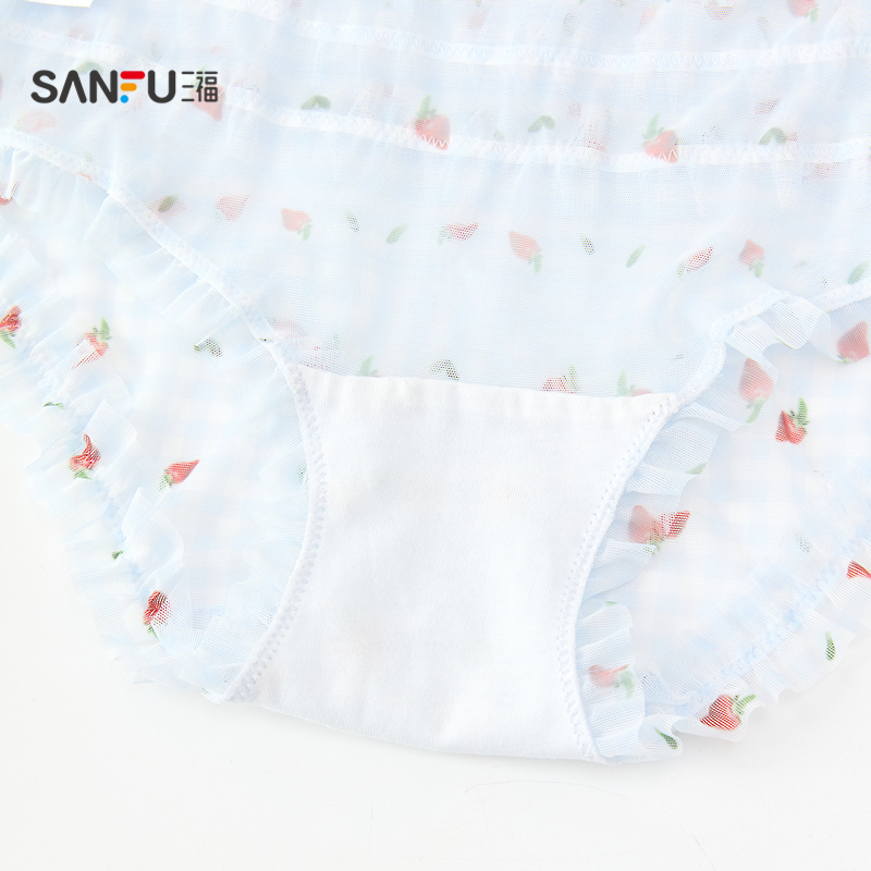 提臀舒适0116 女蕾丝中高腰抗菌弹力棉小平角裤 ab内衣 3条装