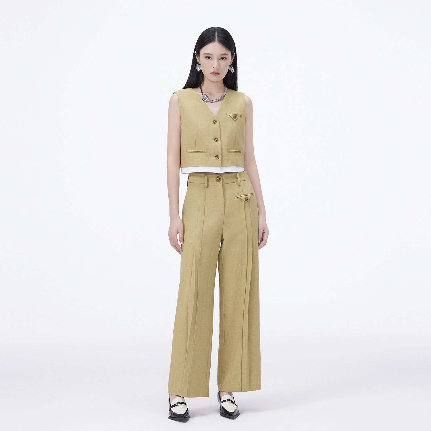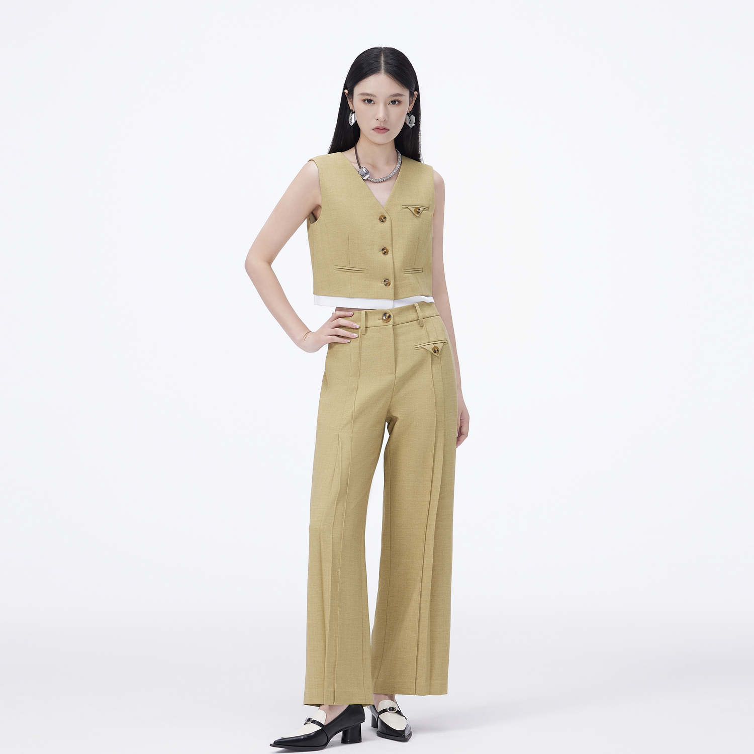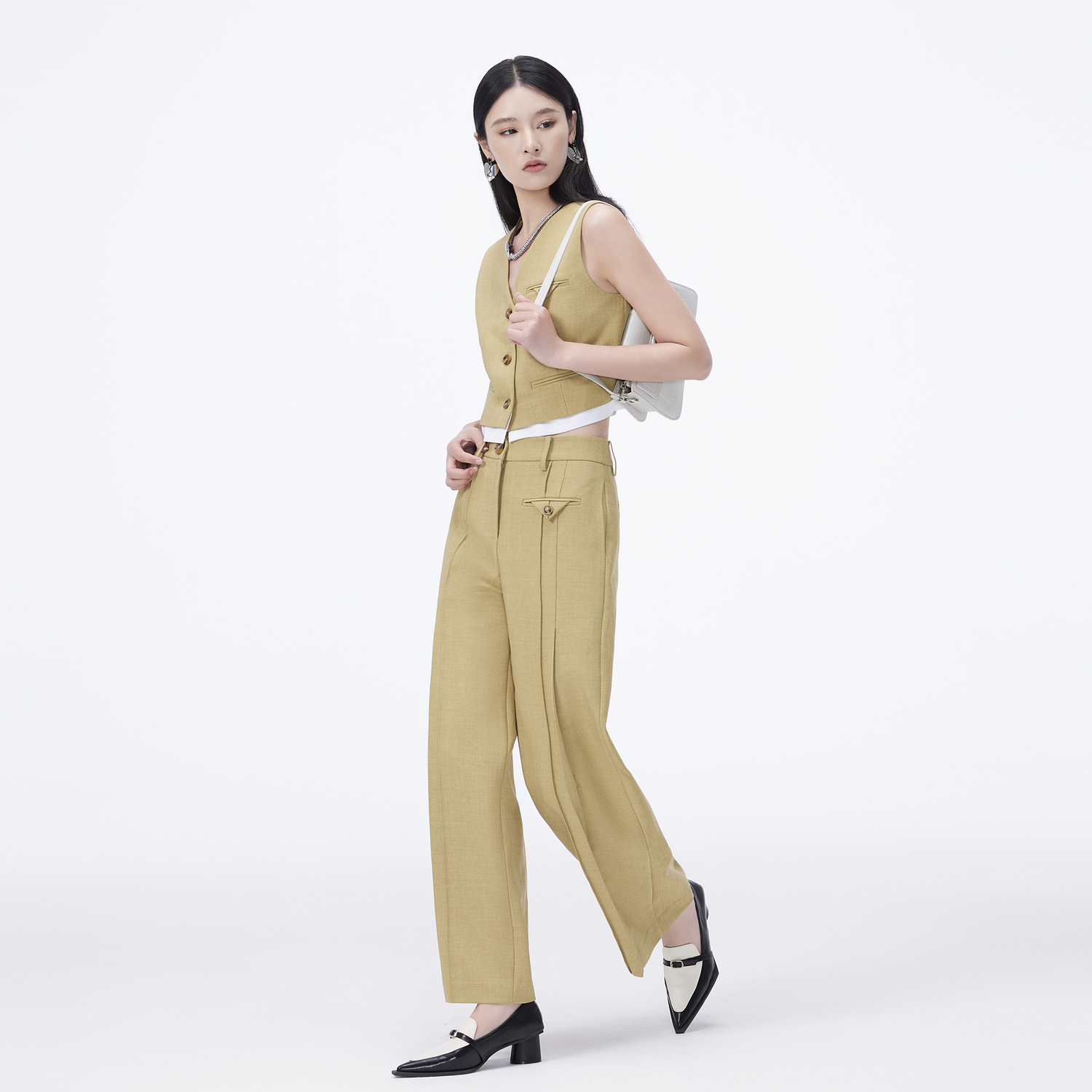 新款 女2025夏装 职业时尚 气质无袖 洋气时髦马甲女裤 上衣喇叭裤 套装
