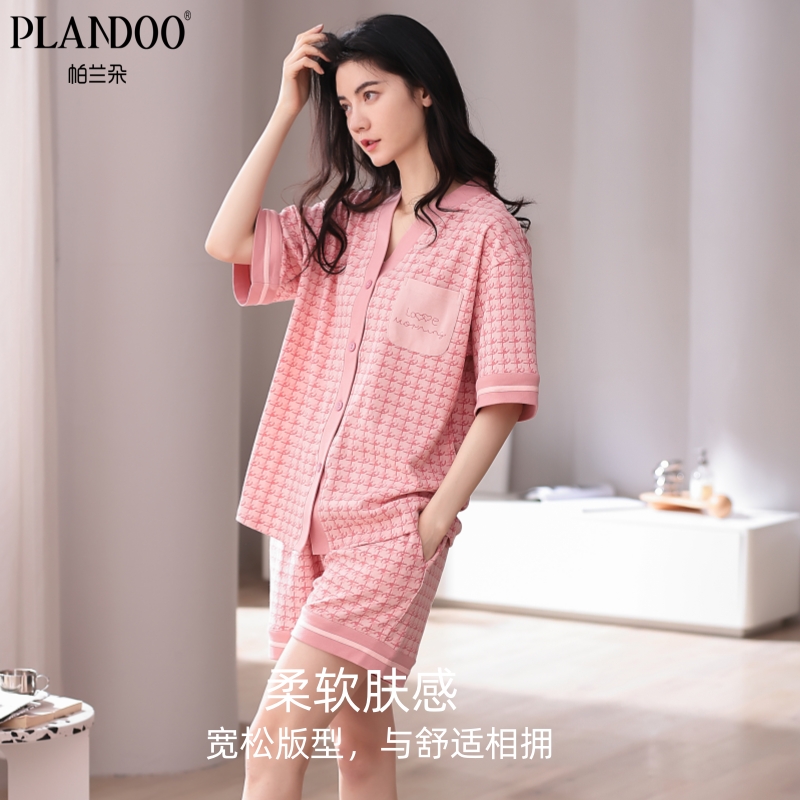 女薄款 夏季 家居服 套装 帕兰朵女士纯棉睡衣简约柔软亲肤可外穿开衫