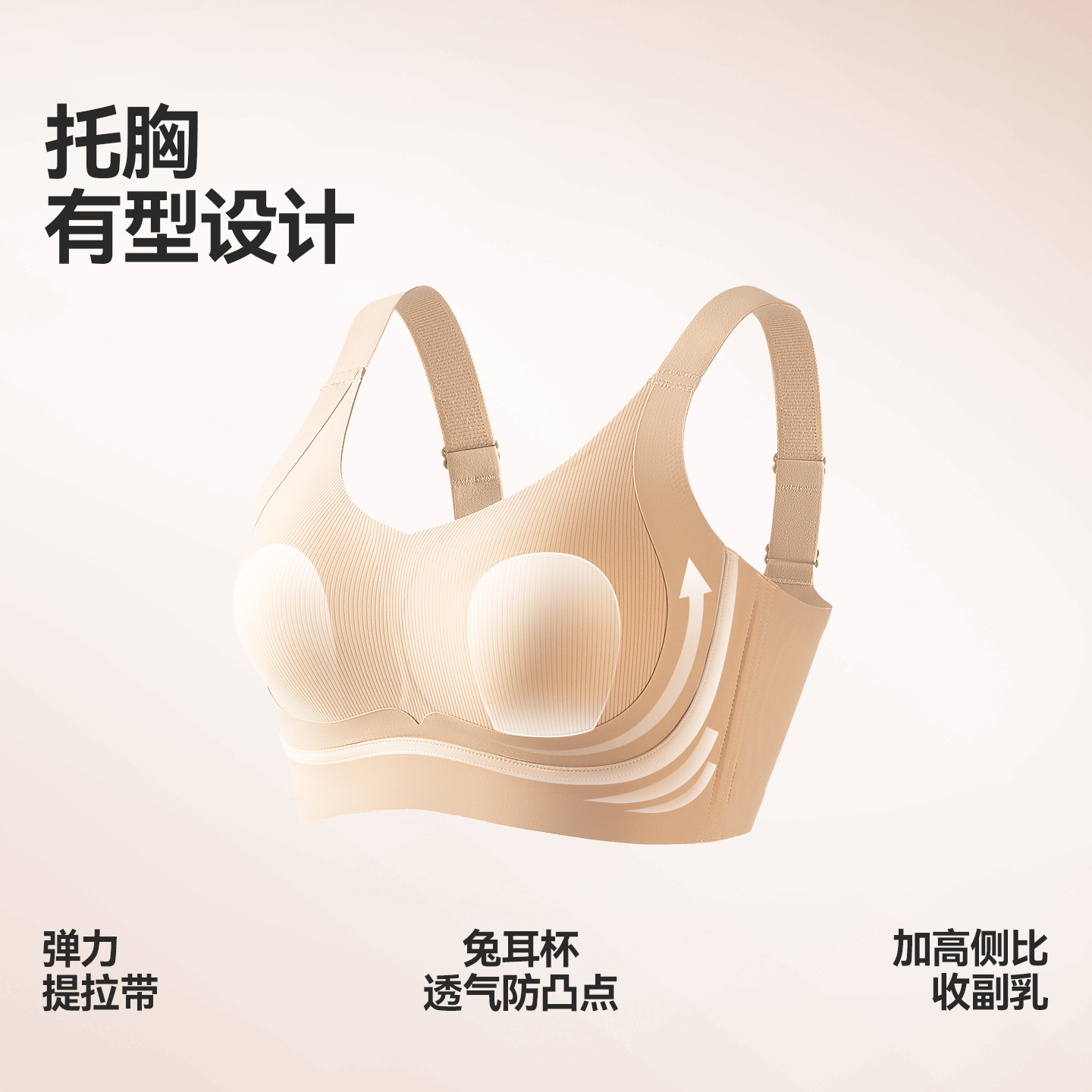 猫人内衣女2025年新款 大胸显小宽肩带舒适不勒防下垂收副乳文胸罩