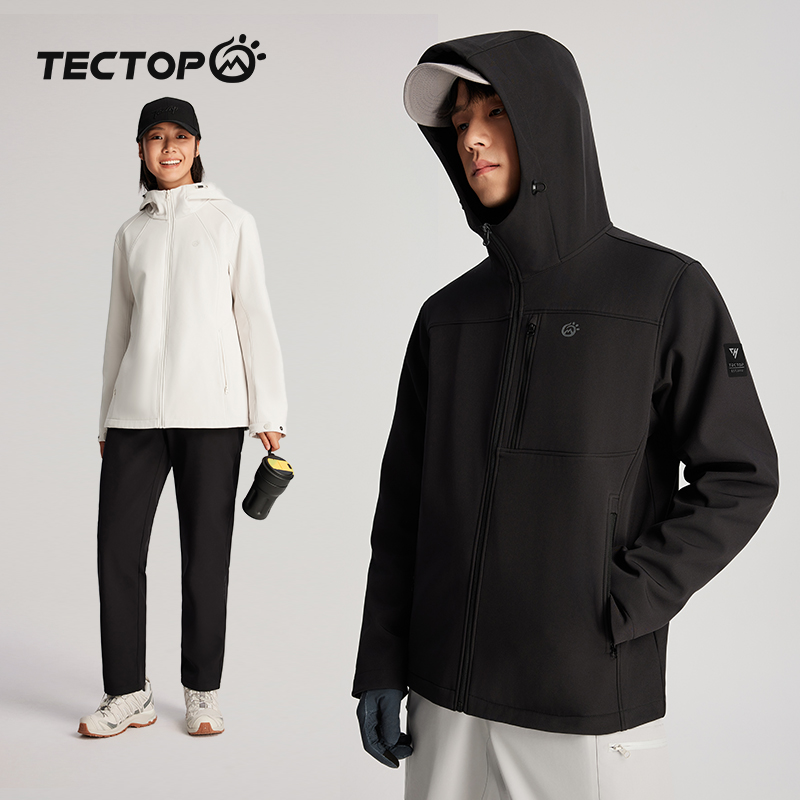 骆驼户外软壳衣外套男秋冬加绒加厚防风防水运动夹克连帽登山服女
