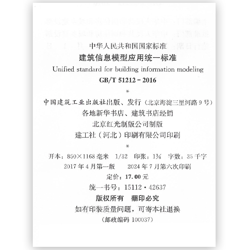 51212 2016 2024年印刷版 建筑信息模型应用统一标准 次