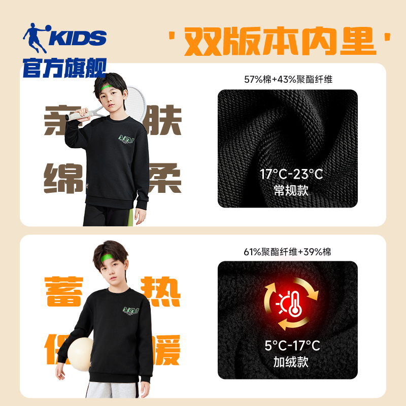 大童运动内搭加绒上衣儿童秋装 2025新款 女 男童卫衣秋冬款 乔丹童装