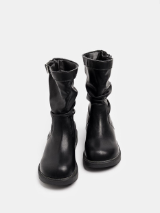 棕色粗跟复古褶皱堆堆靴英伦风短靴女2025春秋新款 圆头靴子中筒靴