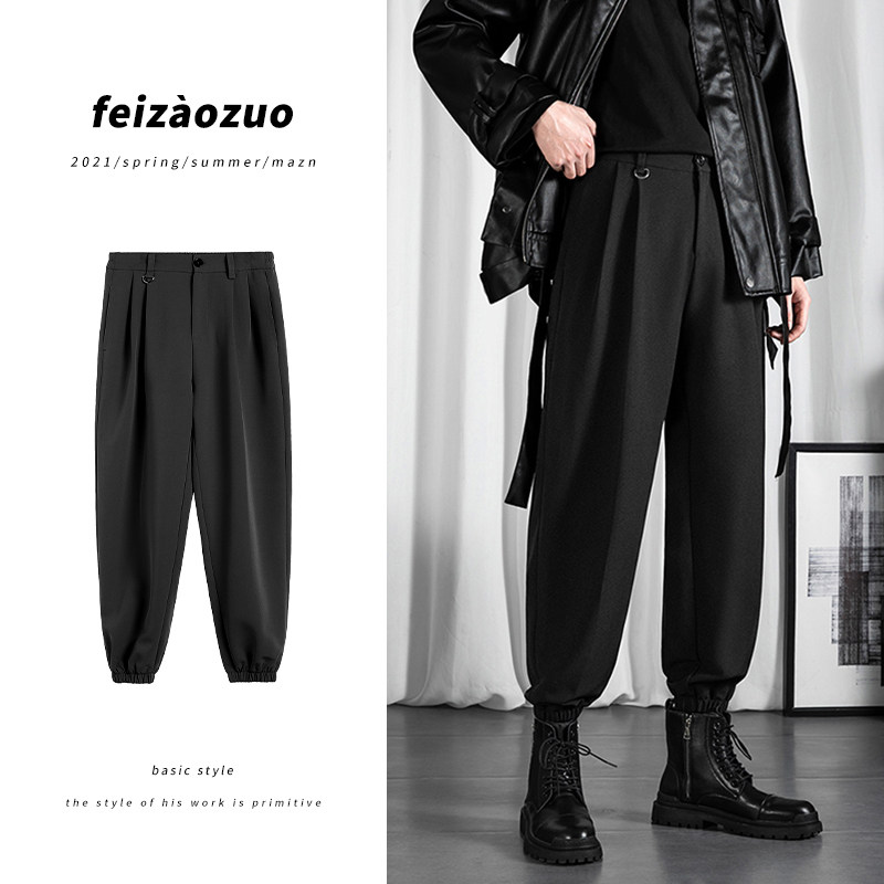夏季 垂感男裤 九分修身 黑色小西裤 子男士 裤 直筒休闲裤 男冰丝西装