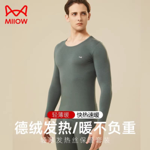德绒羊绒发热防寒冬季 雅鹿保暖内衣男士 男款 套装 加绒加厚秋衣秋裤