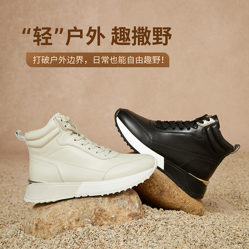 运动鞋 高帮休闲鞋 秋冬新款 子学生厚底男鞋 皮面鞋 征服鸿星尔克板鞋