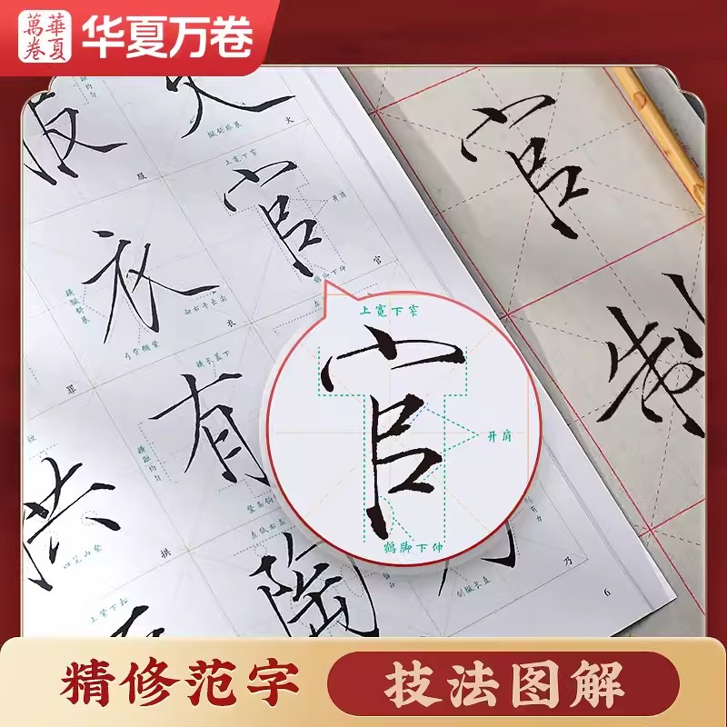 书法毛笔练字帖原色放大对照 宋徽宗瘦金千字文 精选例字米字格高清放大本附视频教程 原碑帖全文附简体旁注 华夏万卷 技法视频版
