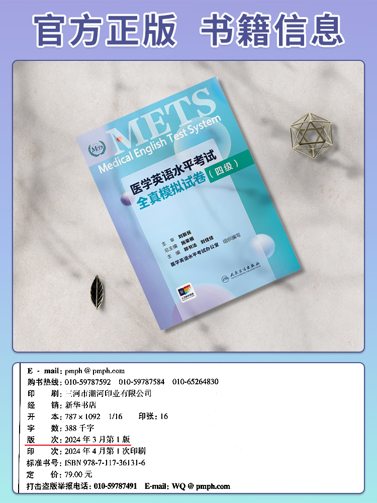 METS医学英语水平考试全真模拟试卷四级24年新版 社 全国医护英语水平考试全国医护强化教程应试指南教材外语书词汇4级人民卫生出版