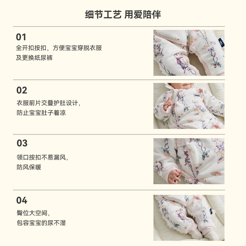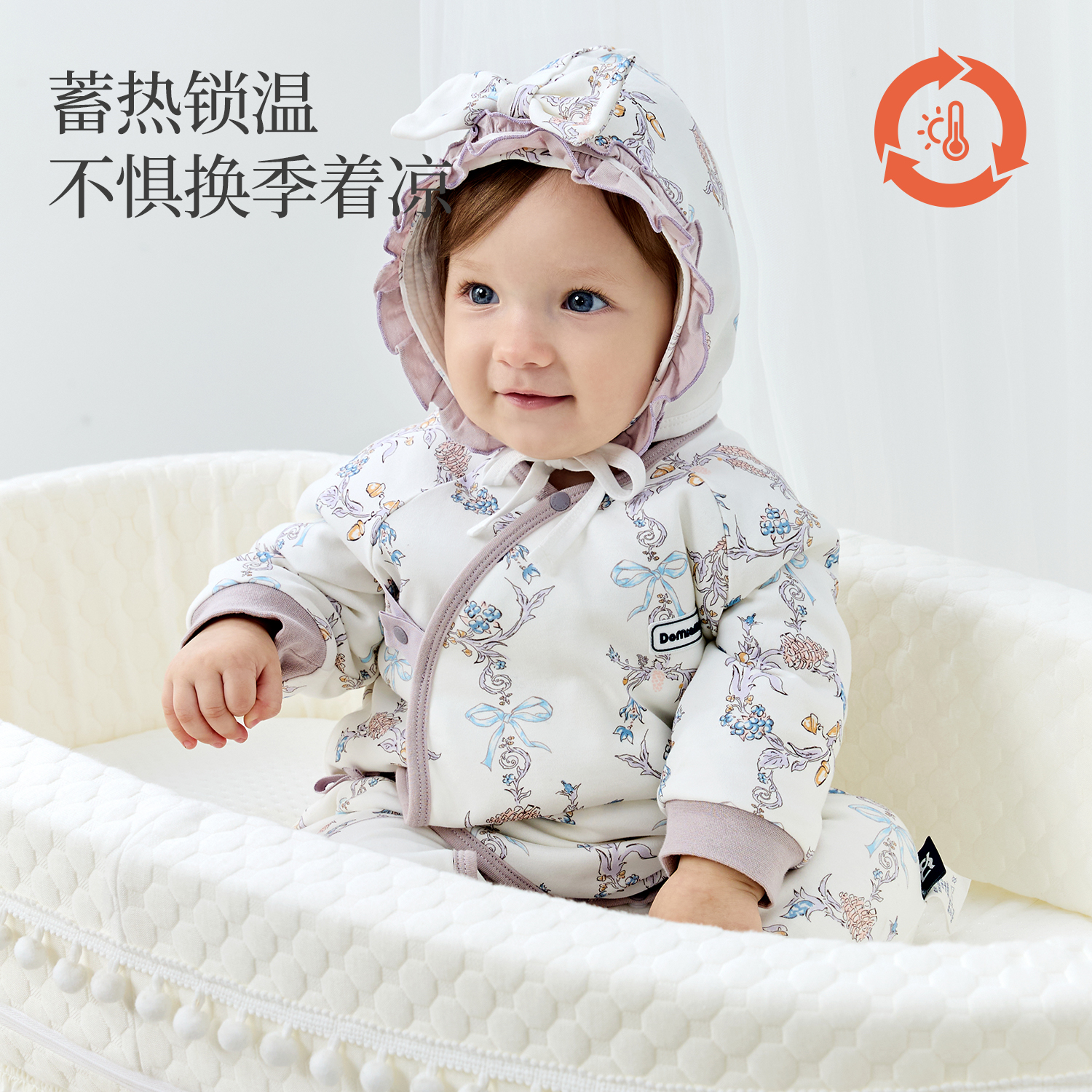 Domiamia新生儿夹棉连体衣满月宝宝衣服秋冬季 保暖加厚婴儿服