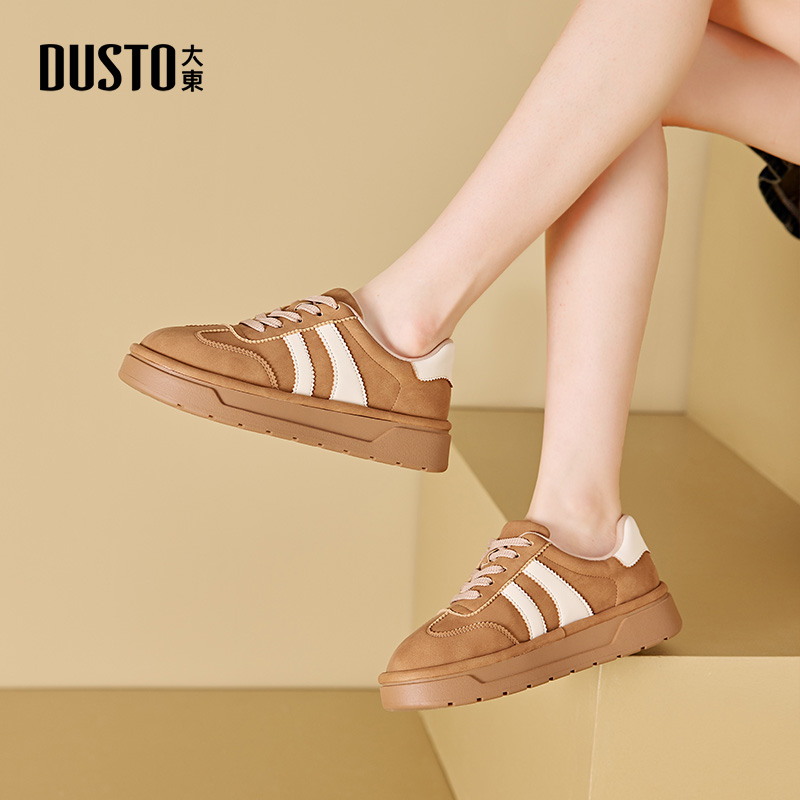 时尚 大东厚底阿甘鞋 新款 2025秋季 休闲平底系带中跟圆头Q1241 女鞋