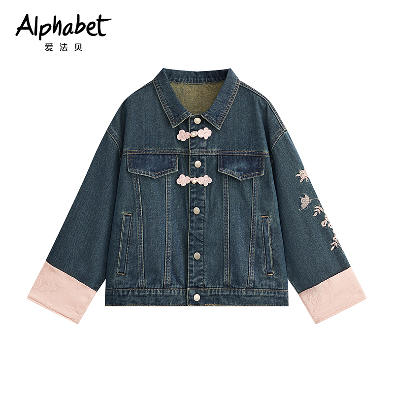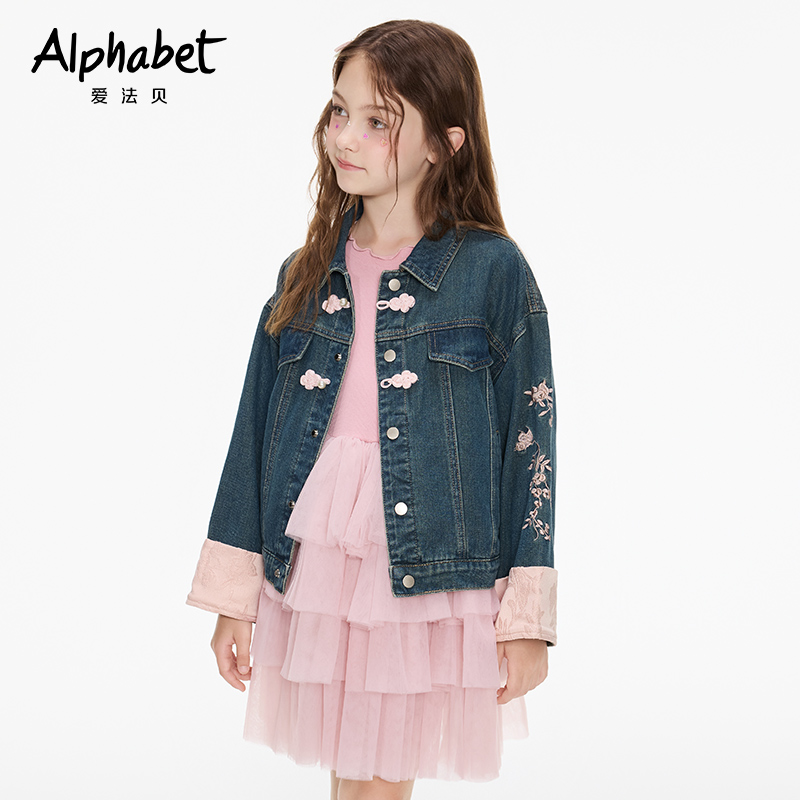 国风亲子 牛仔衫 24春秋新款 新中式 洋气 女童牛仔外套中大儿童装