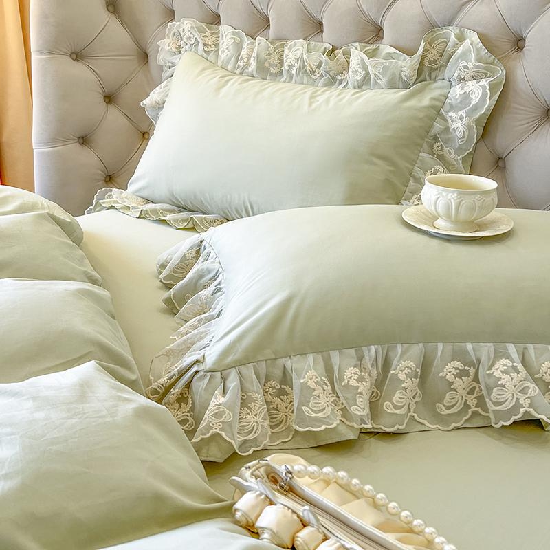 韩式 少女心蕾丝花边亲肤纯棉防滑床罩三件套 公主风全棉单件床裙款