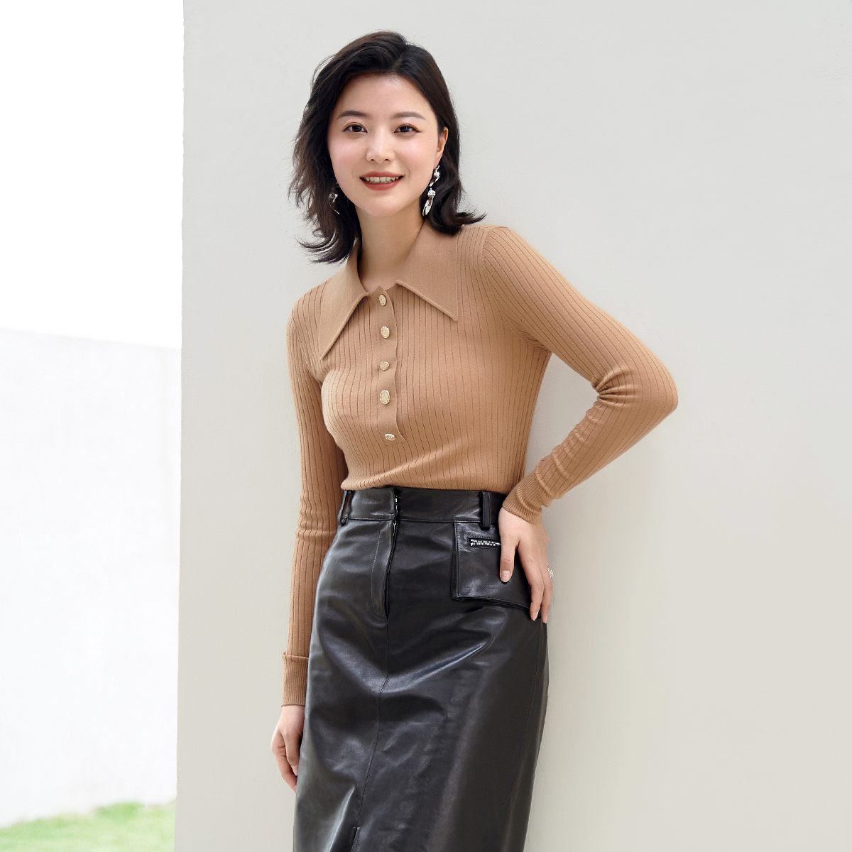 领羊毛针织衫 歌蒂诗春季 气质优雅衬衫 时尚 8C33Z6566 专柜新款