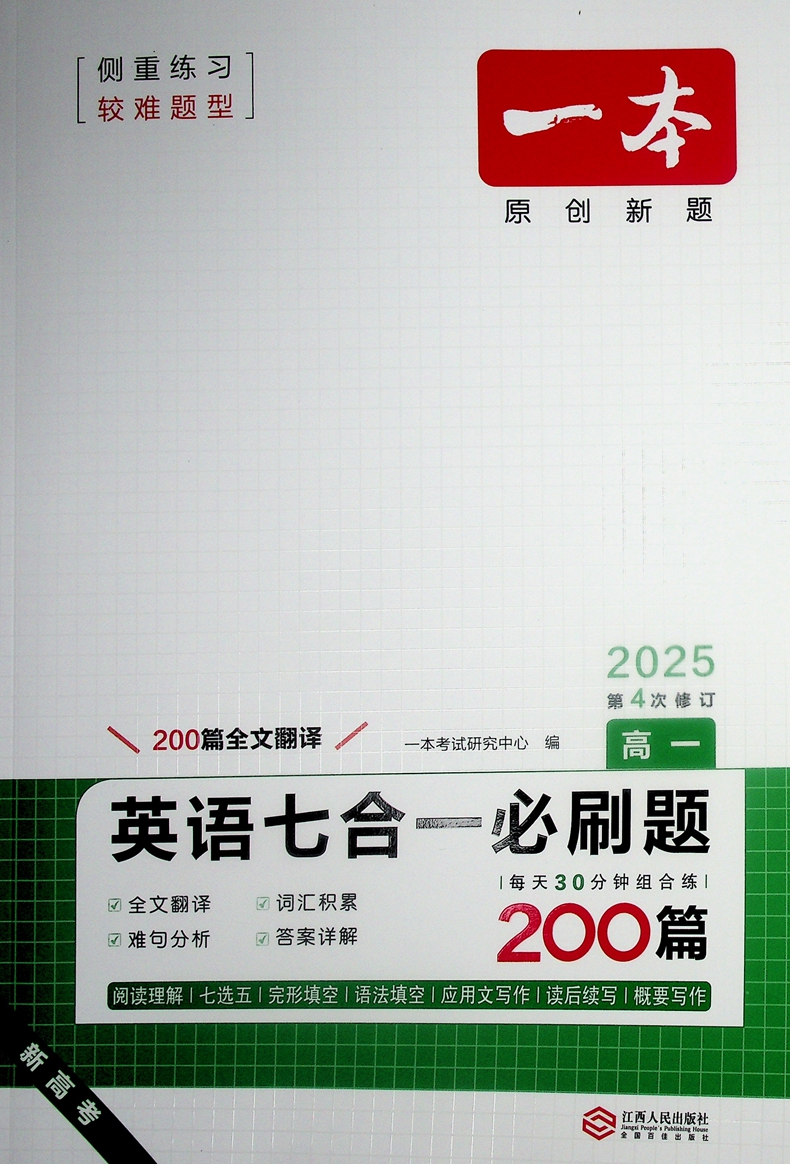 高中英语专项训练原创题 2025版 新高考 高一英语 高一完型填空阅读理解七选五语法填空 一本英语七合一必刷题200篇