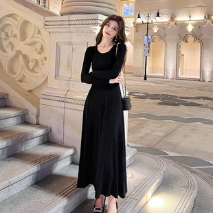 修身 及踝U领大摆长裙长款 显瘦打底裙 新款 莫代尔连衣裙女2025秋季