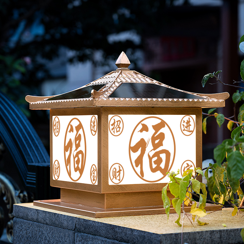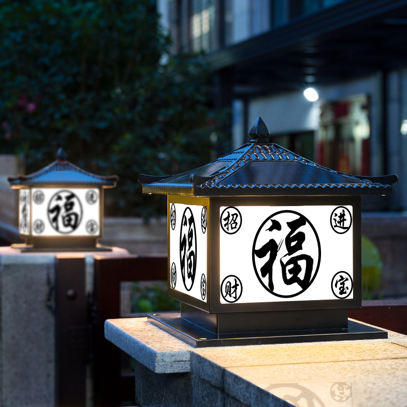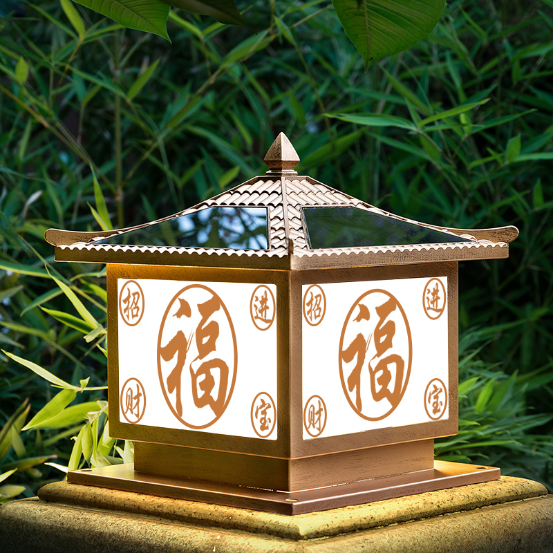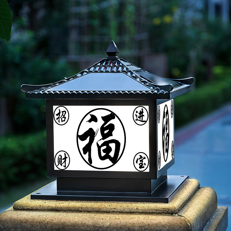 招财进宝太阳能庭院柱头灯户外景观装 饰灯别墅农村室外防水门柱灯