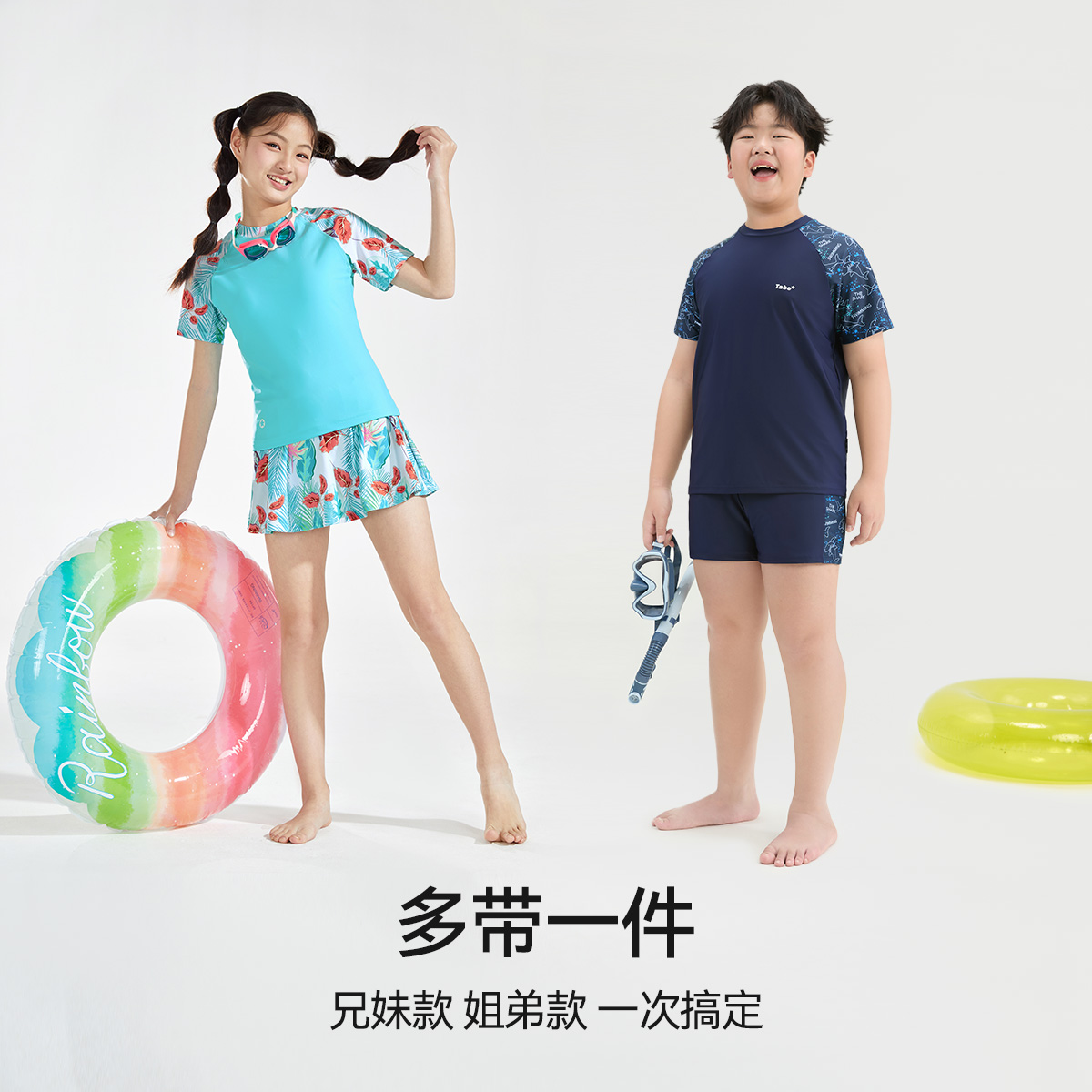 小猪托尼胖童男童泳衣中大童儿童泳裤 男青少年 男孩女童游泳衣套装