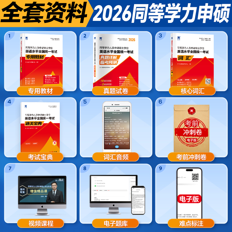 同等学力申硕英语2026年教材历年真题模拟试卷申硕学历在职研究生全国统考考试教材词汇宝典考研同等学力人员申请硕士学位英语天一