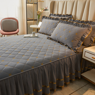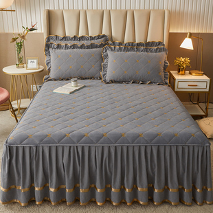 纯色夹棉床裙式 床罩单件加厚床单三件套1.5米1.8x2.0荷叶花边床套
