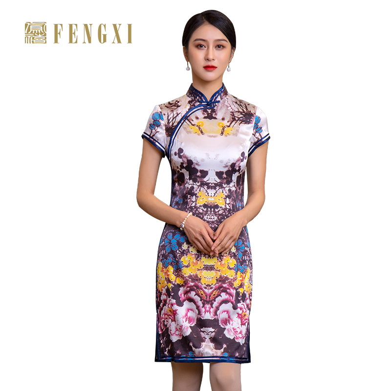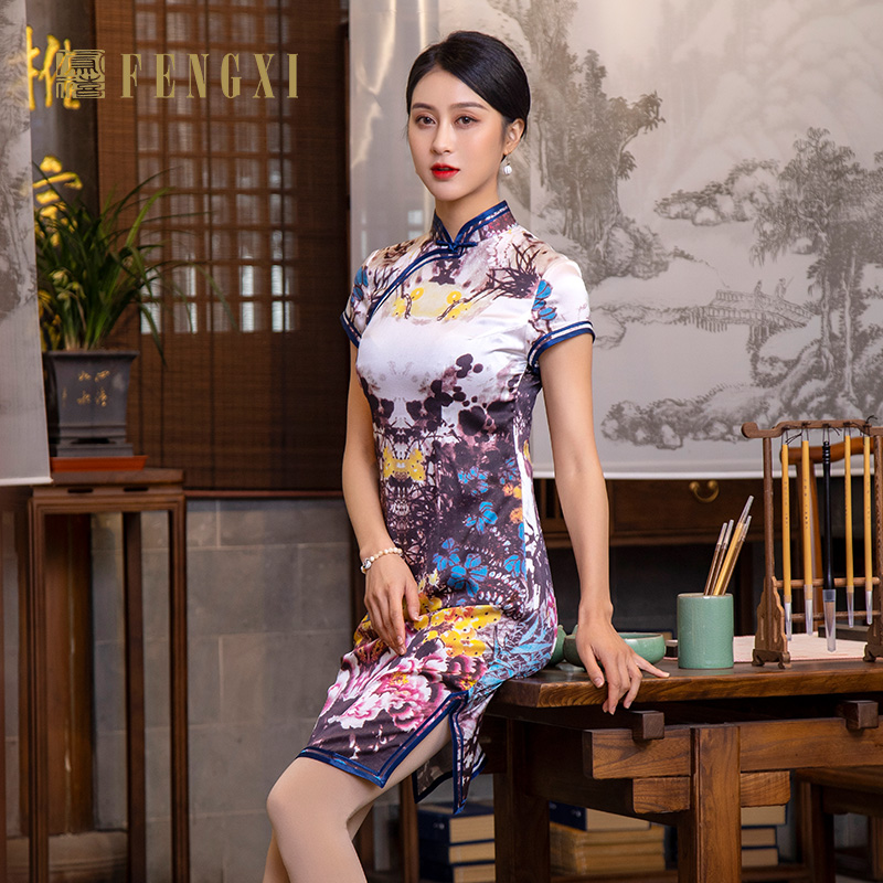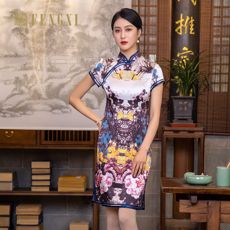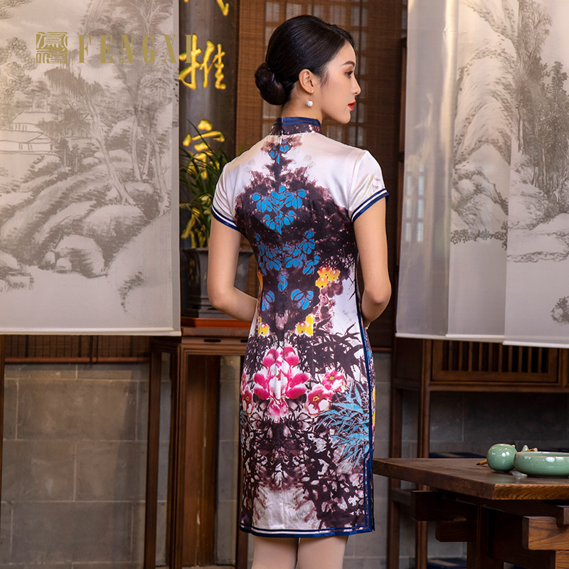 专柜同款 凤禧旗袍2023年新款 旗袍包边印花改良版 真丝日常短款 修身