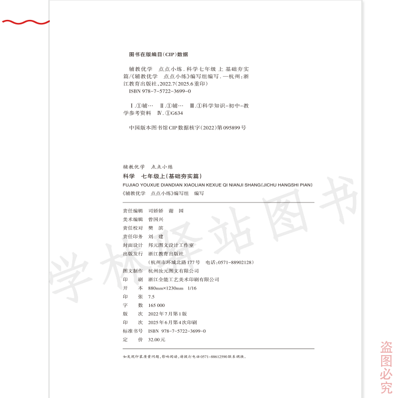 7七年级科学上册基础夯实篇 必备知识学习 典例精析指导 2025秋 周末综合学习半小时 点点小练 天天训练一刻钟 初一 辅教优学