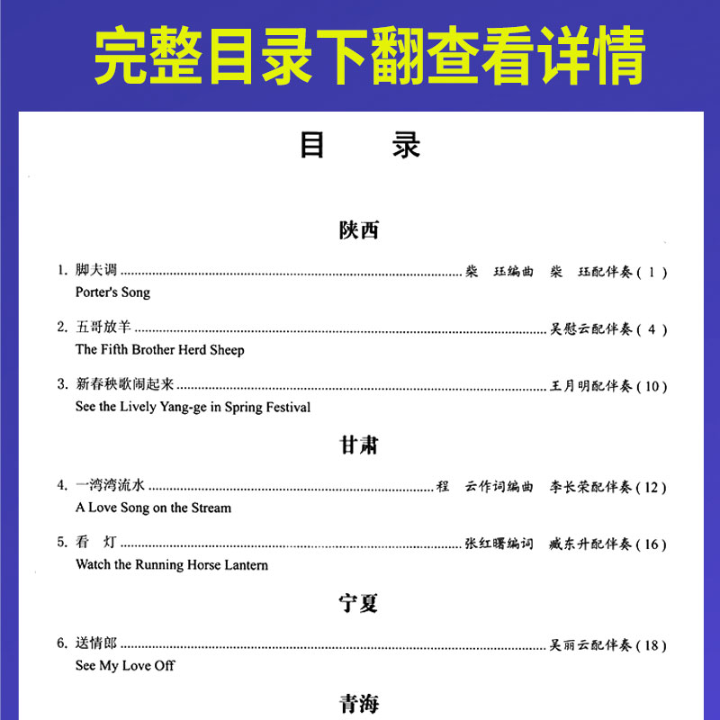 宁夏 社 民歌4 人民音乐出版 中英文 青海 甘肃 陕西 钢琴版 中国经典 正版