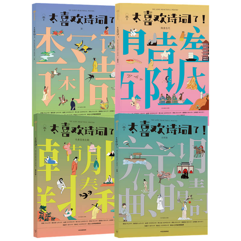 宋 隋唐五代 先秦至南北朝 太喜欢诗词了 明清 4册 元 知中编委会著 套装