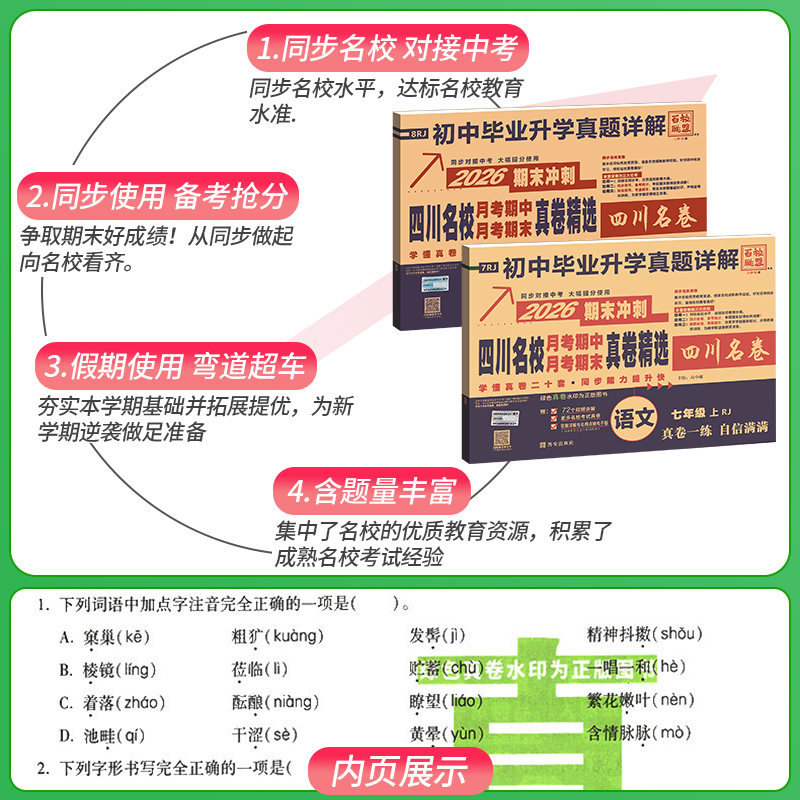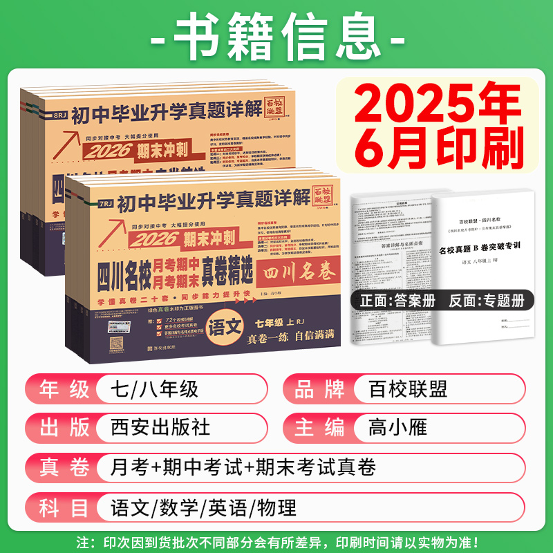 2026四川名卷初中期中月考期末试题七八年级上册下册语文数学英语物理人教北师大版 真卷练习试卷初一初二期末冲刺试卷百校联盟 单元