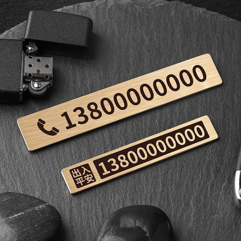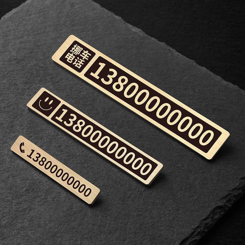 黄铜挪车电话牌临时停车号码 牌复古做旧简约风电话挪车移车牌卡&3