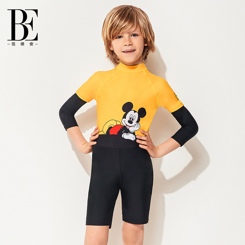 BE范德安男童长袖 保暖泳衣可爱保守游泳衣儿童男 防晒泳衣长袖
