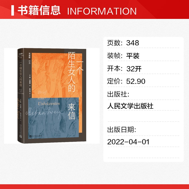 译 来信 张玉书 一个陌生女人 世界名著文学 人民文学出版 斯·茨威格 图书籍 奥 社 著 新华书店正版 等