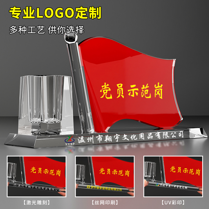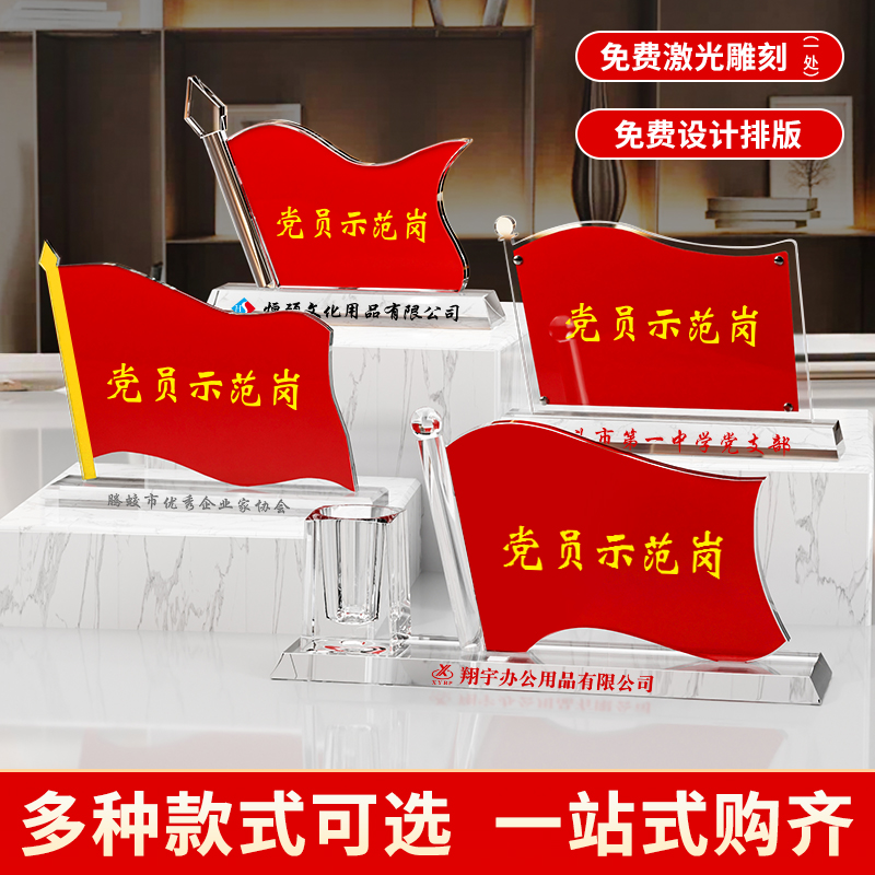 党员先锋岗桌牌旗型党员示范岗台卡水晶台签党建红旗卡台双面展示牌员工领导座位牌磁吸台牌XYBP亚克力定制
