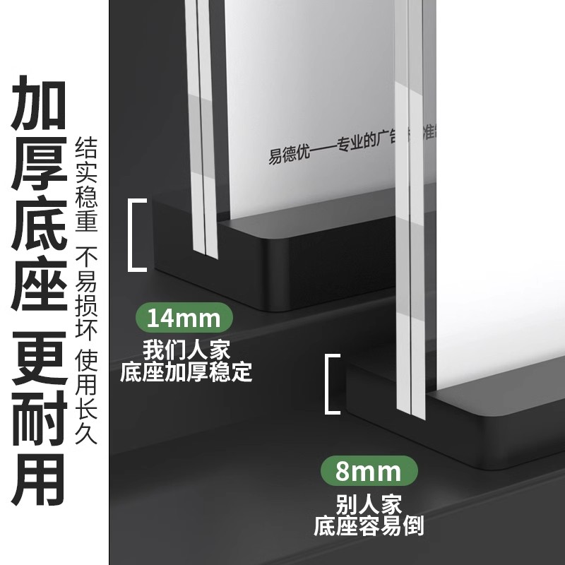 亚克力水晶强磁台牌A4台卡桌面展示牌广告牌价格牌桌牌餐桌立牌透明展示台签水牌席位卡定制T型加厚A5菜单牌