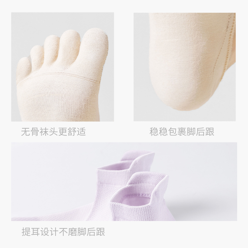 棉竹屋五指袜子女夏季 纯棉纱线透气分趾抗菌防臭吸汗女士短袜 薄款