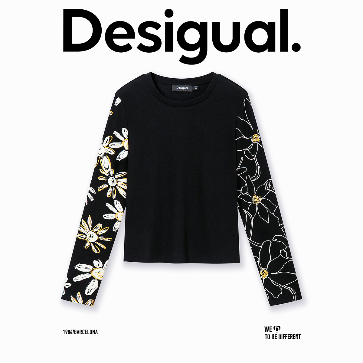 Desigual修身 女士T恤 弹力不对称印花长袖